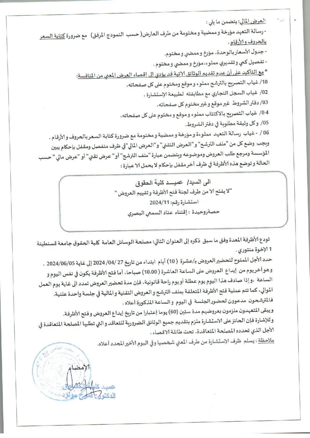 إعلان عن إجراء استشارة رقم 11 / 2024