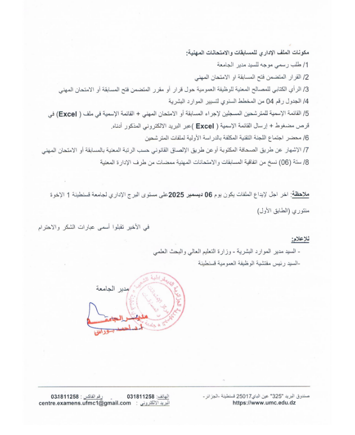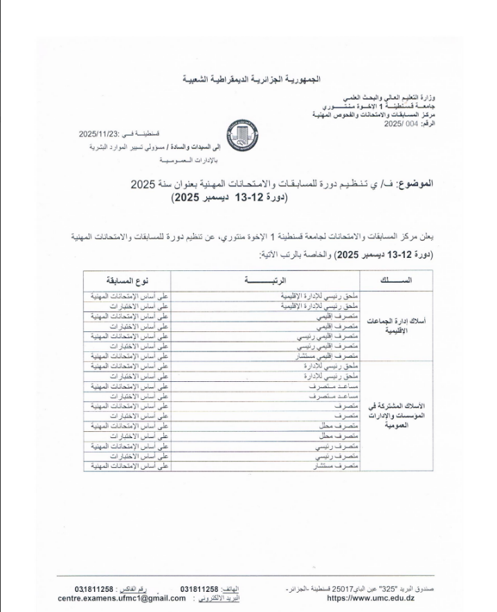 اعلان عن تنضيم دورة لإجراء المسـابقـات و الامتحانات والفحوص المهنيـة - دورة 12 -13 ديسمبر 2025