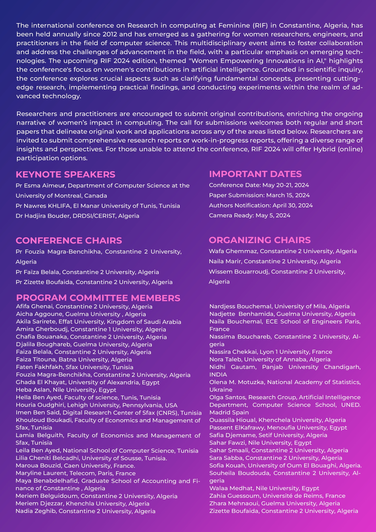 The 13th International Conference on Research in computing at Feminine (RIF 2024)