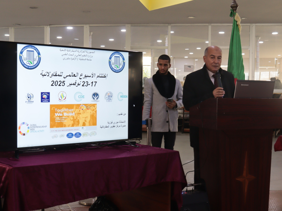 اختُتمت يوم 23 نوفمبر 2025 فعاليات الأسبوع الوطني للمقاولتية بجامعة قسنطينة 1 – الإخوة منتوري، وذلك بحضور أساتذة الجامعة، الخبراء، الطلبة، وممثلي الحاضنات والمؤسسات الداعمة لريادة الأعمال. تميّز هذا الحدث بتنظيم ورشات تدريبية، محاضرات تفاعلية، وعروض مشاريع ابتكارية قدمها الطلبة أصحاب الأفكار الريادية.