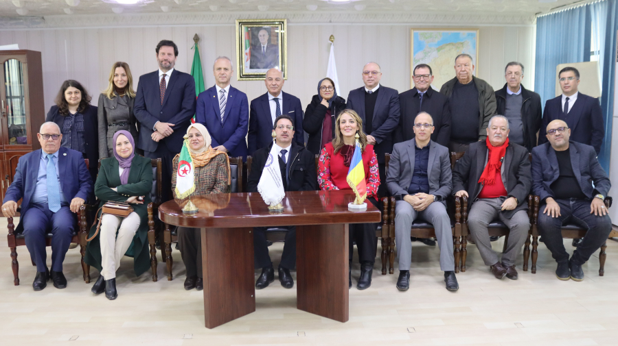 The delegation was composed of the Rector of Transilvania University of Romania, Professor Engineer Vasile Abrudan, Mr Gruia Jacotă, Ambassador of Romania to Algeria, Mrs Cristina Jacotă, Ambassador-at-large for the Sahel, resident in Algiers, as well as Mrs Monica Pescaru, Political Adviser and Head of Educational Affairs at the Embassy of Romania in Algiers.